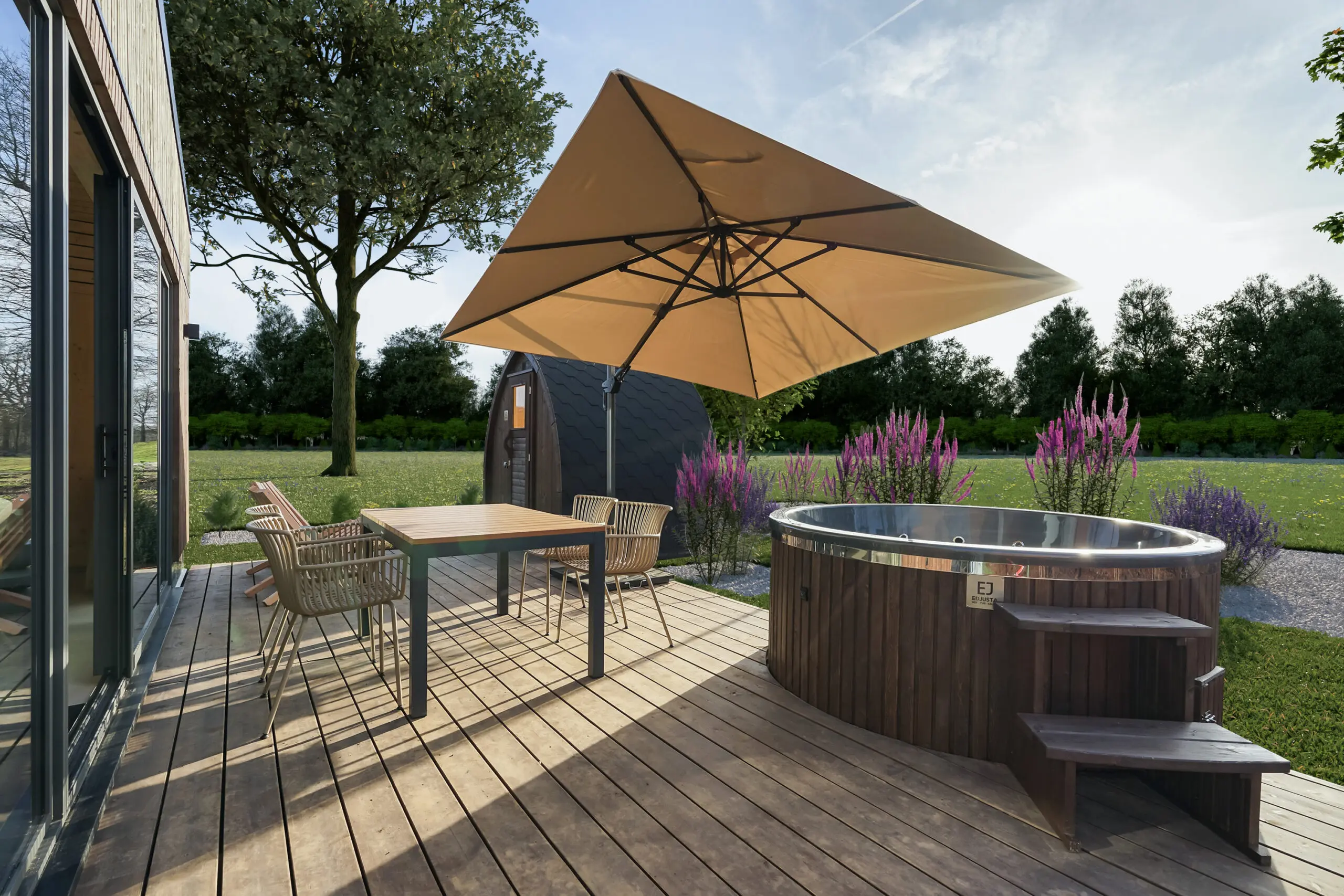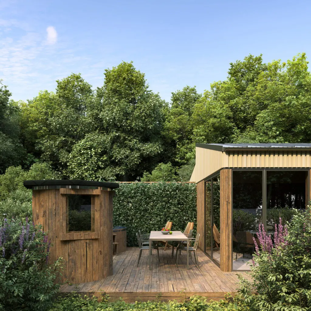 Every villa features its own sauna and jacuzzi as standard. In the nature homes, the sauna is more compact but always included. This ensures that every guest enjoys wellness and comfort – a key distinguishing factor in rental and occupancy rates.